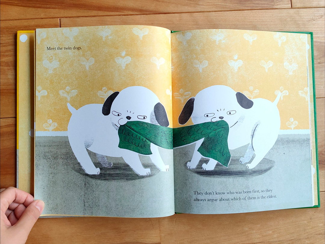 甘えん坊のふたごの犬が新しい兄弟を迎える物語絵本。